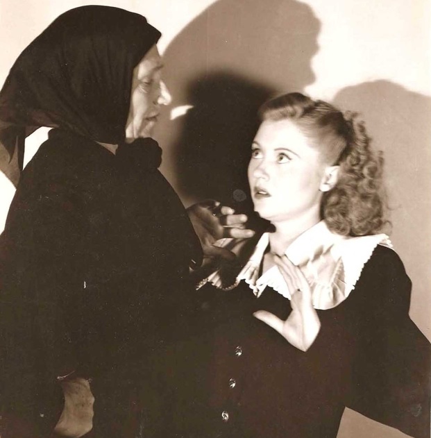 Mae is played by Adele Jergens, who turned 31 on November 26, 1948. She’s obviously not old enough to be Marilyn Monroe’s mother, so the makeup department put a few gray streaks in her hair.