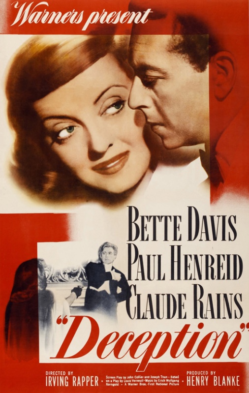 Lightning didn’t strike twice. While Deception, which reunited Davis with her fellow Now, Voyager alumni Paul Henreid and Claude Rains, received generally positive reviews, it was the first picture Bette Davis made for Warner Bros. that lost money. It’s a good film, but as melodramas go, it’s not terribly thrilling, and the criminal activity is kept to a minimum.
