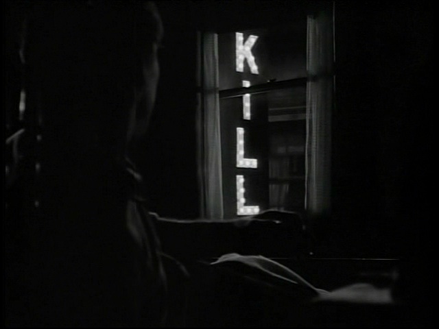 As I said, the identity of the killer isn’t difficult to suss out, and The Unsuspected is more of a thriller than a mystery, but it doesn’t matter. It’s a first-rate thriller, brilliantly directed by Curtiz and gorgeously shot by his cinematographer, Elwood “Woody” Bredell. Even though the story itself is standard stuff, the film is full of arresting visuals, recurring motifs like faces reflected upside down, and brilliant little moments like the one in which Mr. Press (Jack Lambert — recently seen as the villainous “Claw” in Dick Tracy’s Dilemma) sits in a dark hotel room. The neon sign outside says “Hotel Peekskill,” but when the shot cuts to inside the room, all we can see is “kill,” blinking on and off hypnotically.