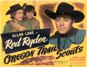 R.G. Springsteen’s Oregon Trail Scouts is an origin story, and tells how cowboy hero Red Ryder (Allan Lane) and his young Indian sidekick Little Beaver (Bobby Blake) first met.