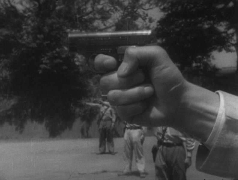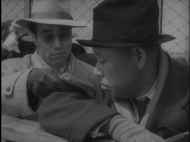 But there’s also the sense of life returning to normal. Sato and Murakami track a suspect to a baseball game and keep him under observation in the stands. This tense sequence features seamlessly integrated 16mm footage of an actual game between the Nankai Hawks and the Yomiuri Giants. The players all have numbers on their uniforms, which was forbidden as “too individualistic” during World War II.