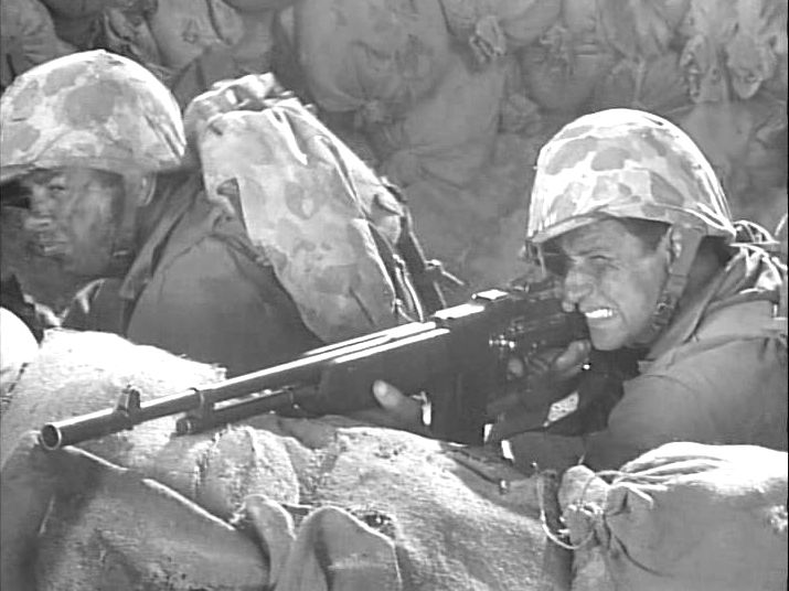 When the film begins, Lt. Anderson is tired of death. He led a company of Marines through the bloody battles of Tarawa and Iwo Jima, and only seven men in his original command are still alive. (Halls of Montezuma might be meant to depict the battle on Okinawa, but I don’t think it’s ever directly stated where it takes place.)